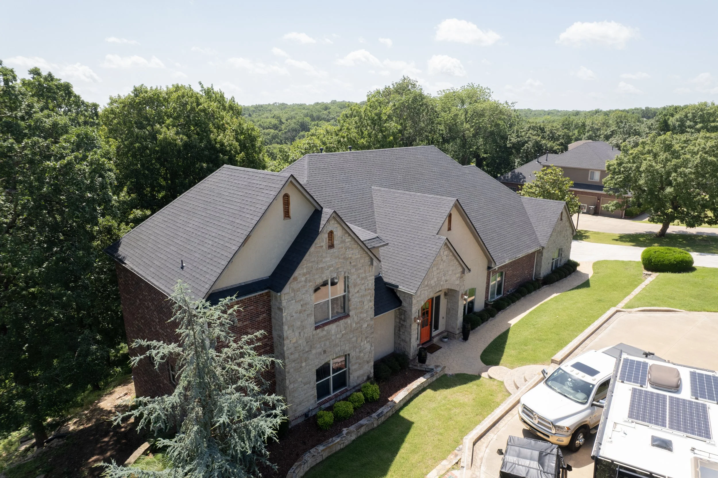 We are a trusted and experienced roofing & gutter company focusing in the Oklahoma, Arkansas and Kansas areas. We are a local family-owned business who truly just want to make a difference and help. Our mission is to serve our community to the highest standard!